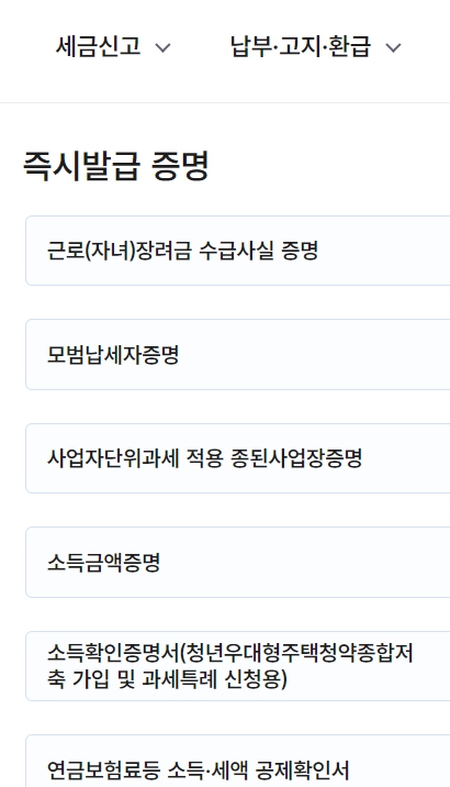 ▶ 세무서 방문 없이 증명서 발급 가능 – 각종 민원 서비스 이용 가능