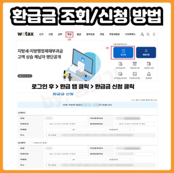 - 메인 화면에서 '지방세환급금 조회/신청' 메뉴 선택