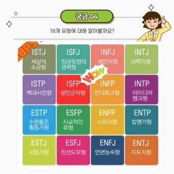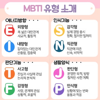ENFP 유형은 외향적이고, 창의력이 풍부하며, 사람들과의 관계를 중요하게 생각합니다. 반면 ISTJ는 책임감이 강하고, 질서와 규칙을 잘 지키는 성향이에요. mbti 성격유형 검사 해석을 통해 나의 성격은 물론, 타인의 특징도 어느 정도 파악할 수 있어 관계에 도움이 됩니다.