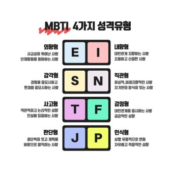 mbti 성격유형 검사 해석의 핵심은 4가지 지표를 이해하는 데 있습니다.